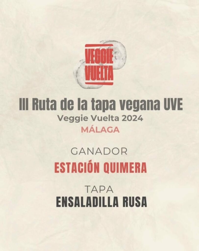 III VEGGIE VUELTA MÁLAGA En 2024 participaron cerca de 40 ciudades con más de 300 tapas veganas y convertimos la ruta de la tapa vegana en un concurso.¡En Málaga tuvimos 18 participantes y 103 tapas! De un total de 5388 votos, 201 hicieron ganadora la tapa de Ensaladilla rusa de Estación Quimera.
